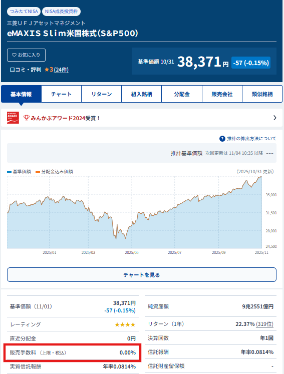 ・販売手数料:0円(ノーロード)
