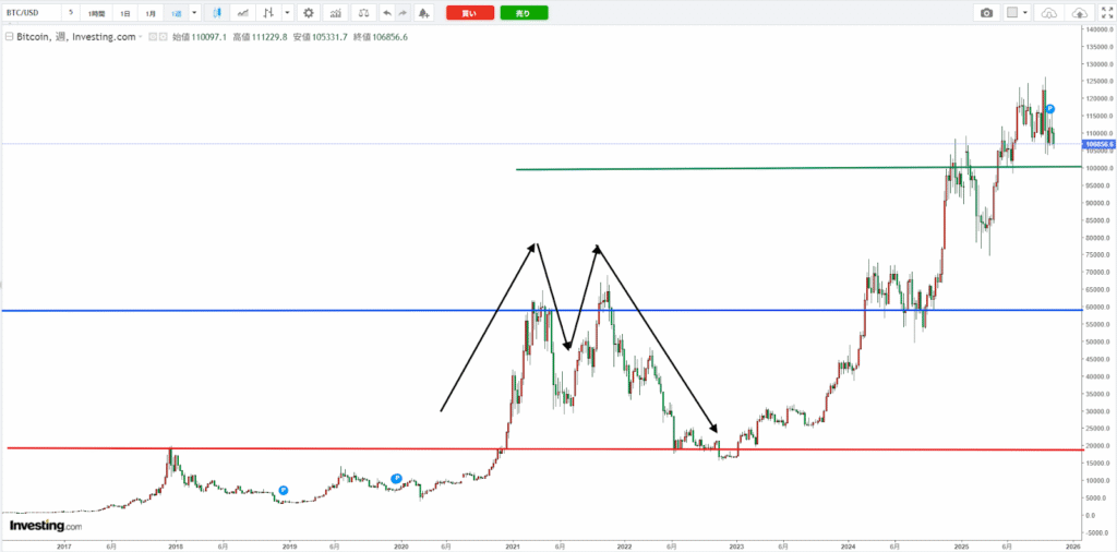 ・60000ドルを抜けた後、100000ドルまで一気に上昇